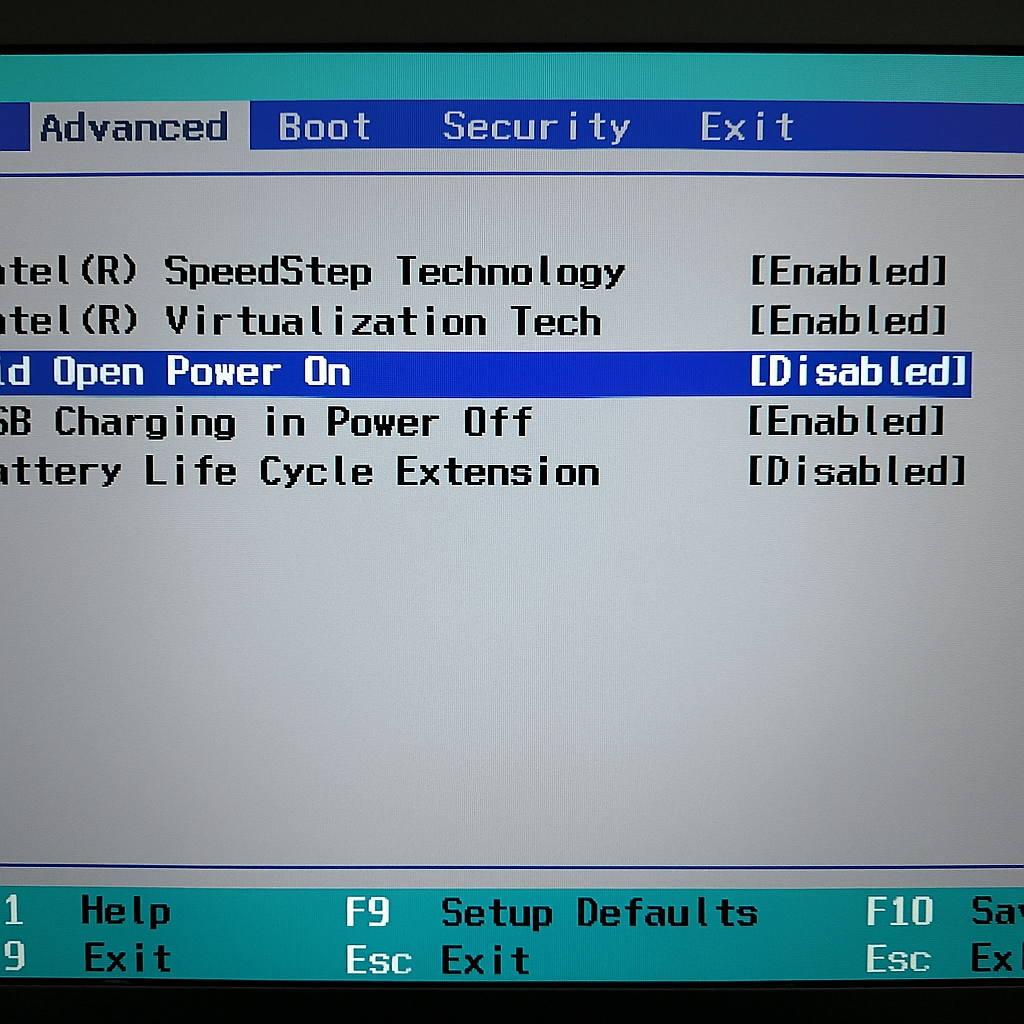 - Lid Open Power On [Enabled] ← 이 항목!