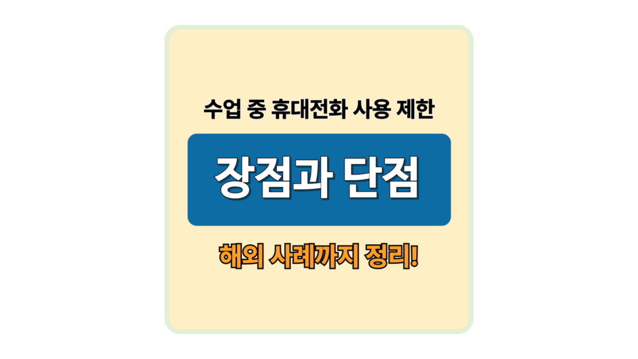 - 장점: 집중력 향상, 교권 보호, 사이버 문제 예방, 공평한 학습 환경