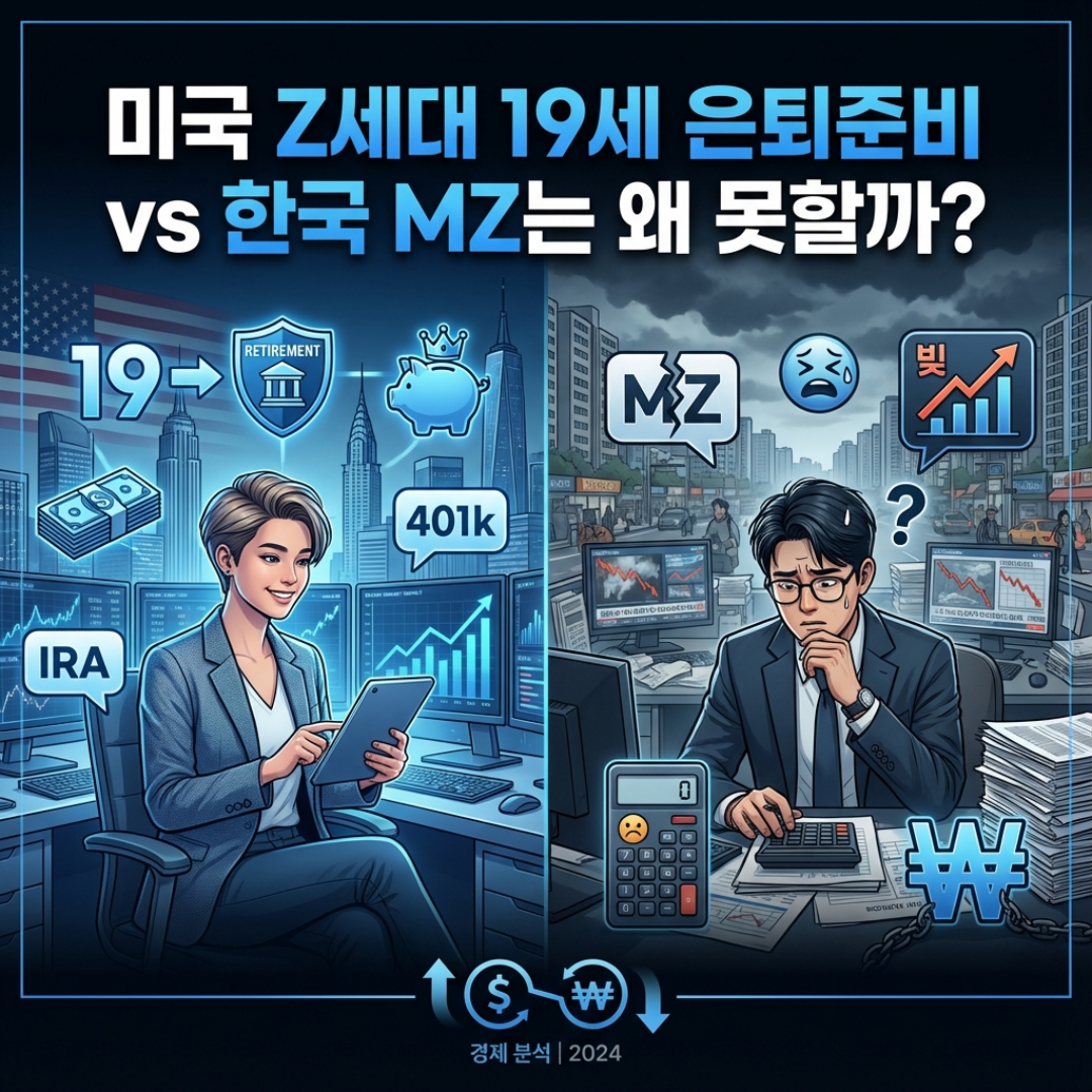 - 미국 Z세대: 19세에 IRA·401(k) 가입 증가 → 조기 은퇴 준비가 ‘생존 전략’.