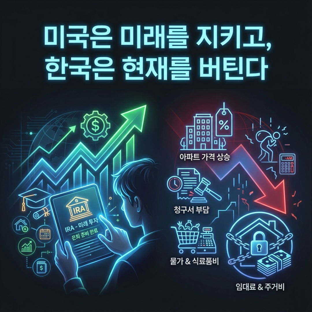 - 핵심 차이: 미국은 미래 확보, 한국은 현재 생존 비용 방어가 우선.