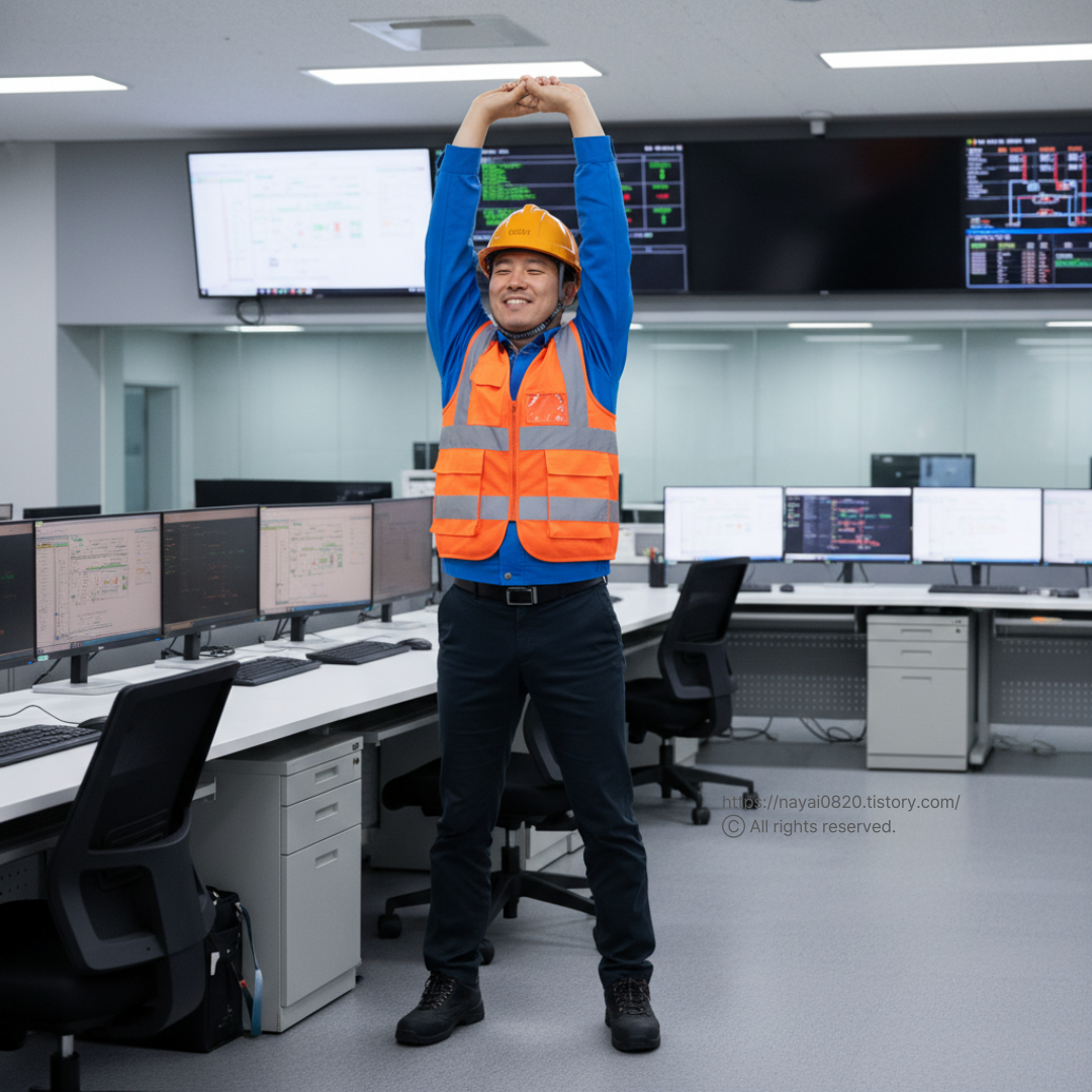 - 스트레칭은 근육·관절을 미리 풀어 사고를 예방하는 안전 작업
