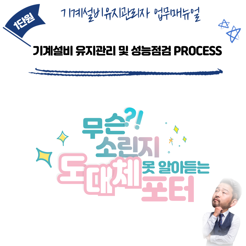 아래는 기계설비유지관리자가 전반적인 유지관리 및 성능점검 PROCESS를 나열해 놓은 것이다.