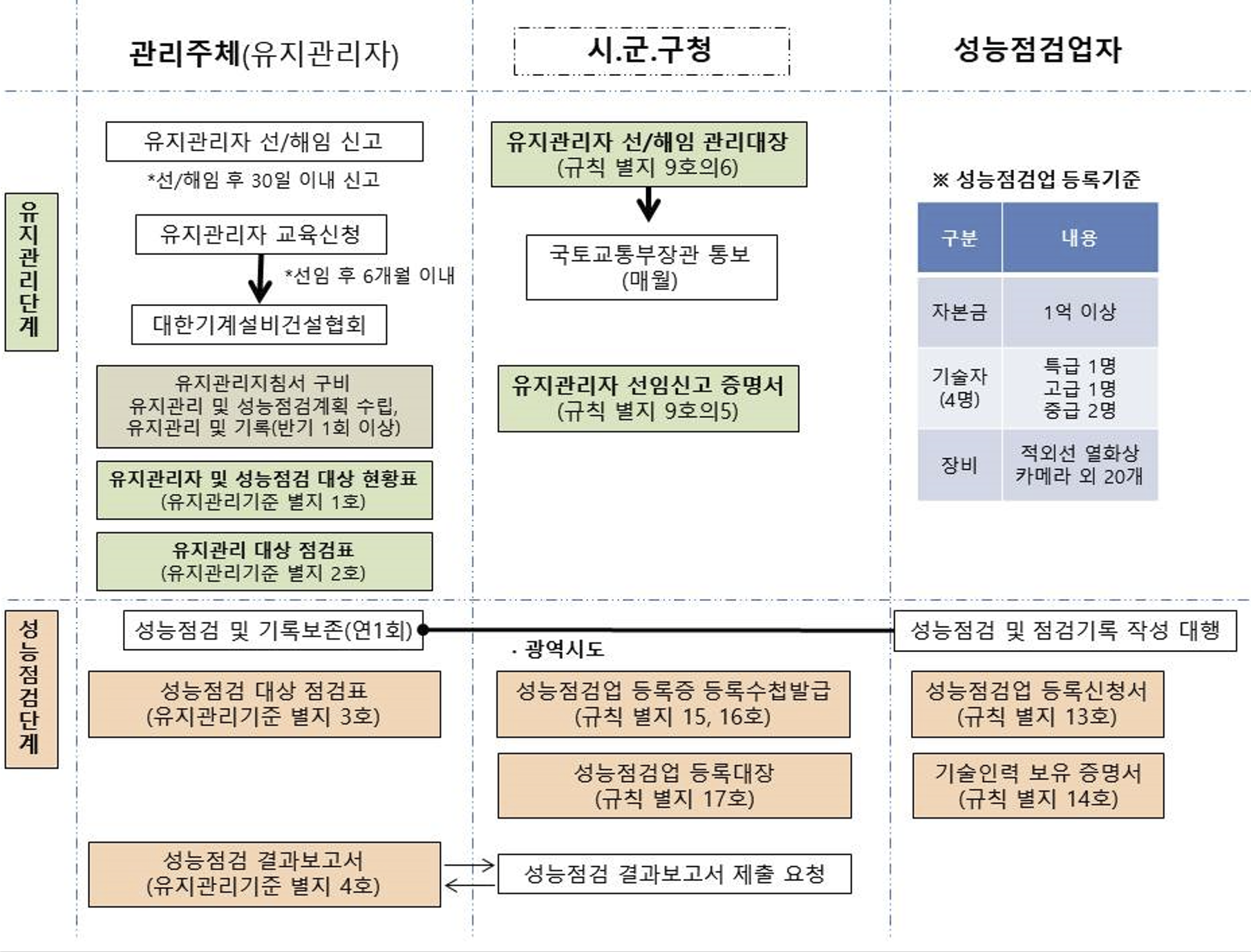 기계설비유지관리에 있어서는 유지관리단계 와 성능점검단계로 나눌 수 있다.